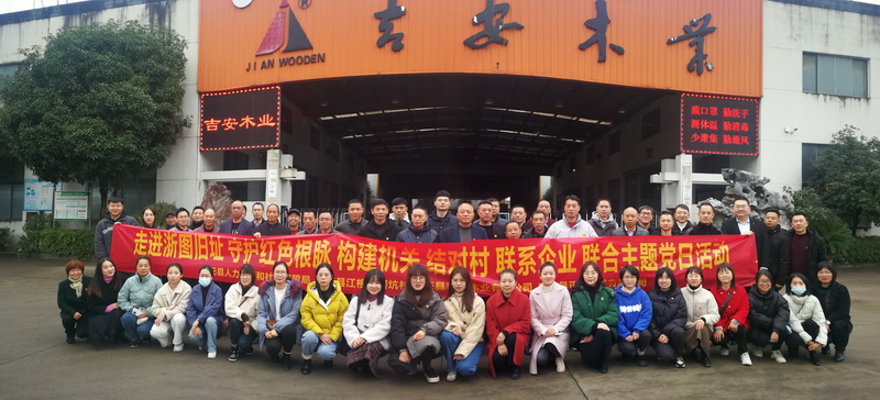 2021年11月22日下午,慶元縣人力資源和社會(huì)保障局、江根鄉(xiāng)若坑村黨支部、吉安木業(yè)黨支部、正興文具黨支部聯(lián)合主題黨日活動(dòng)走進(jìn)吉安木業(yè)。